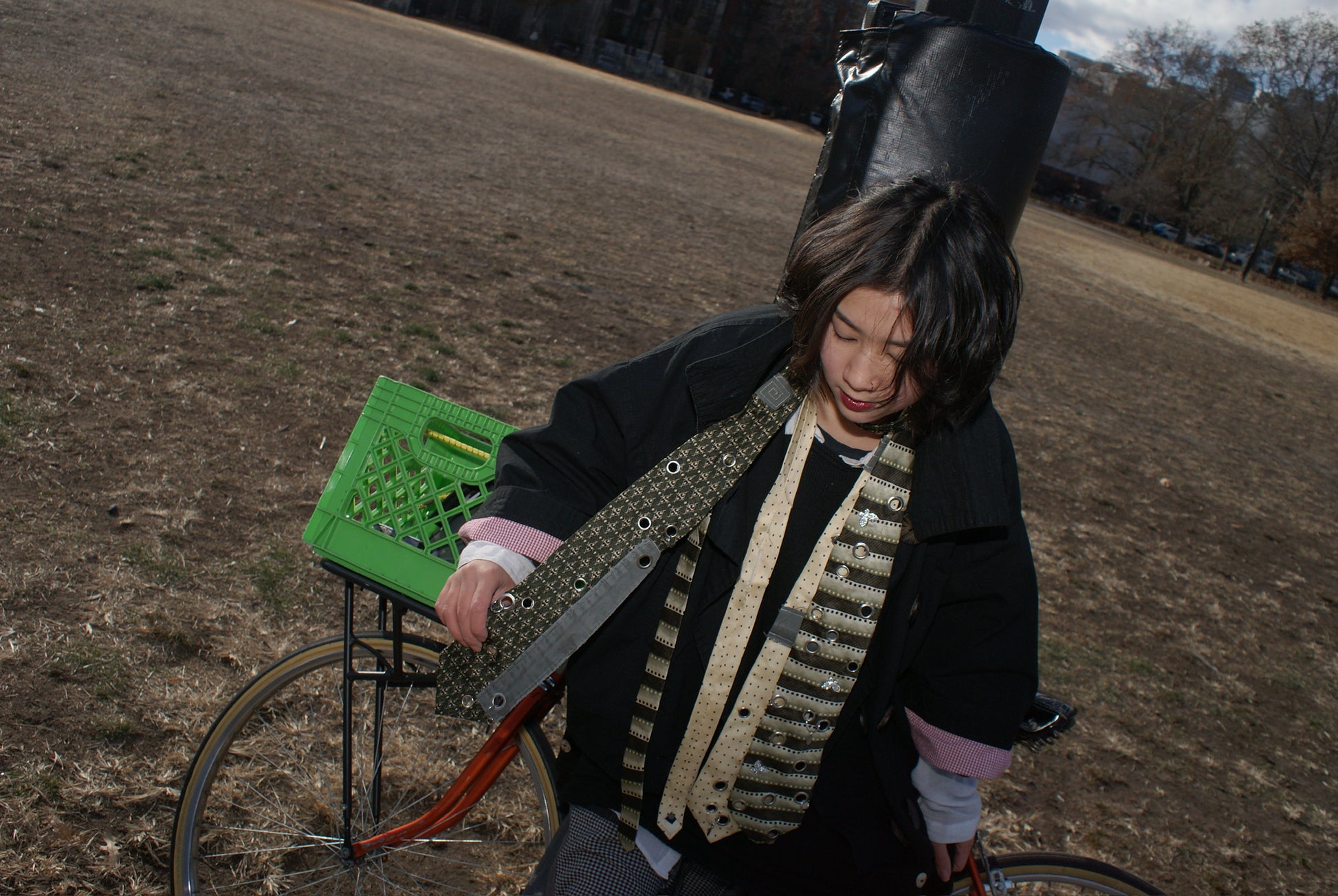 100% silk vintage green suiting tie upcycled with silver eyelet hardware and crystal butterfly studs. Please note that this tie is vintage and may have some slight signs of wear.