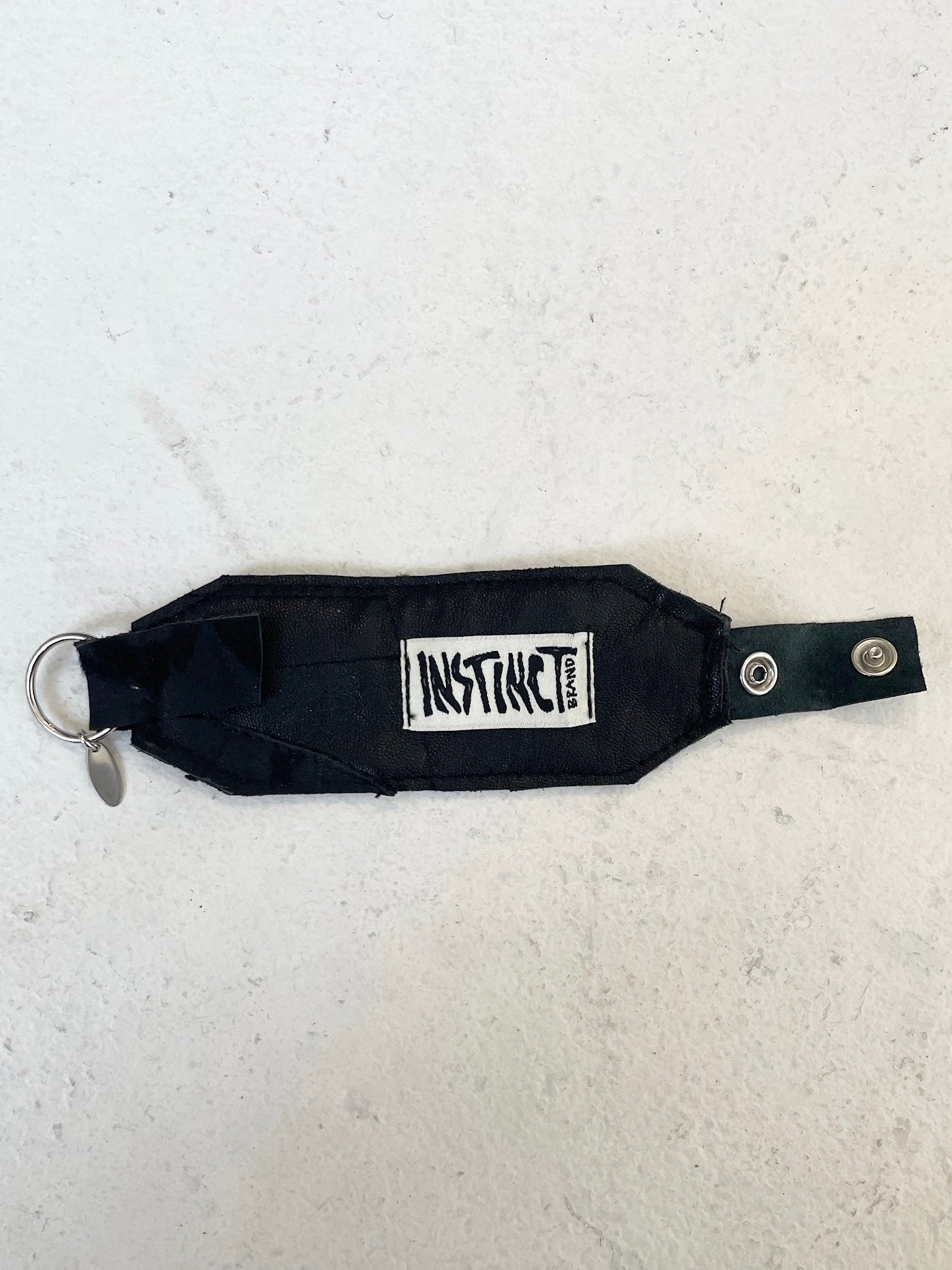 Cuff bracelet made from scrap genuine leather and silver hardware with snap closure.