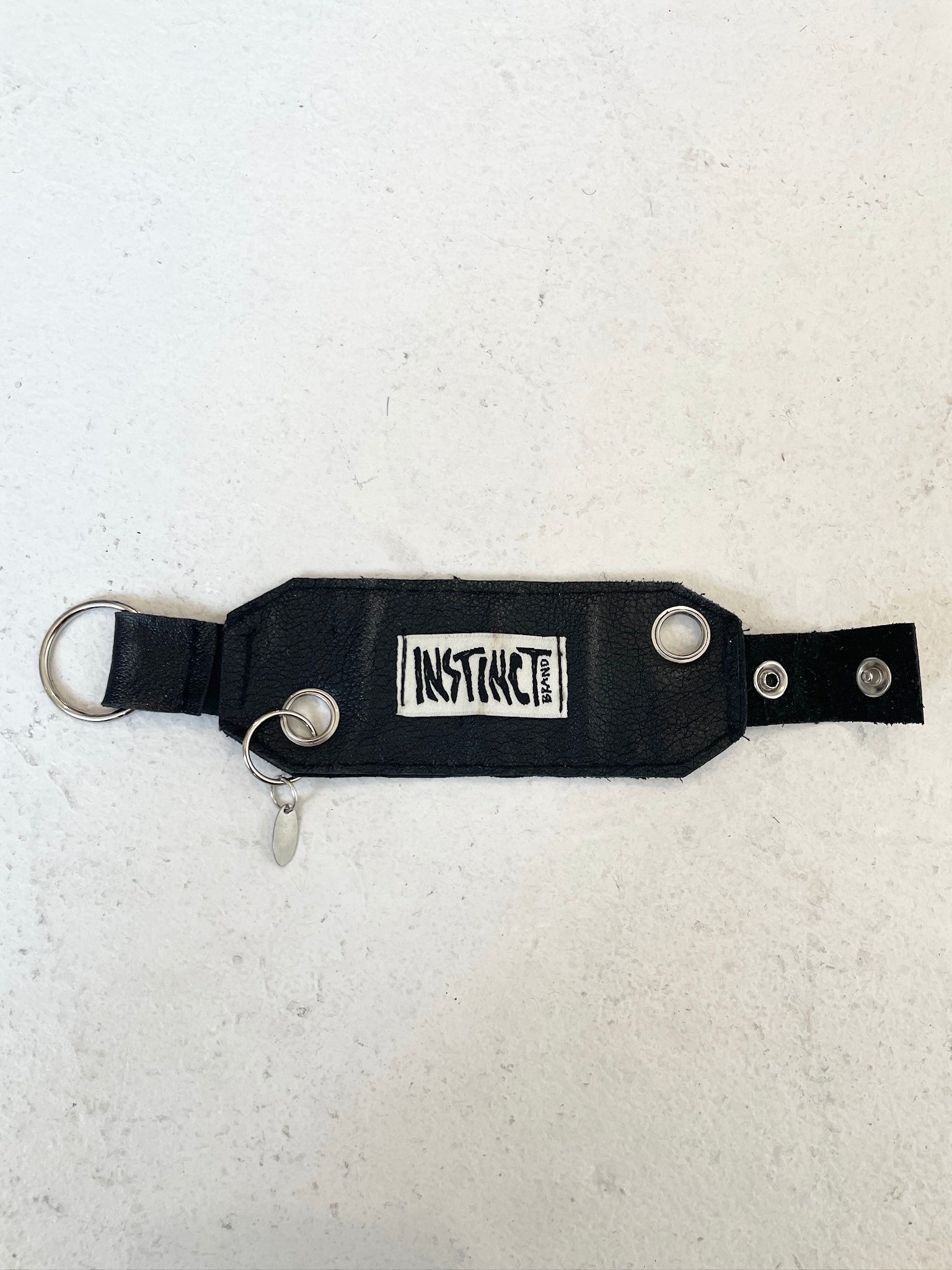 Cuff bracelet made from scrap genuine leather and silver hardware with snap closure.